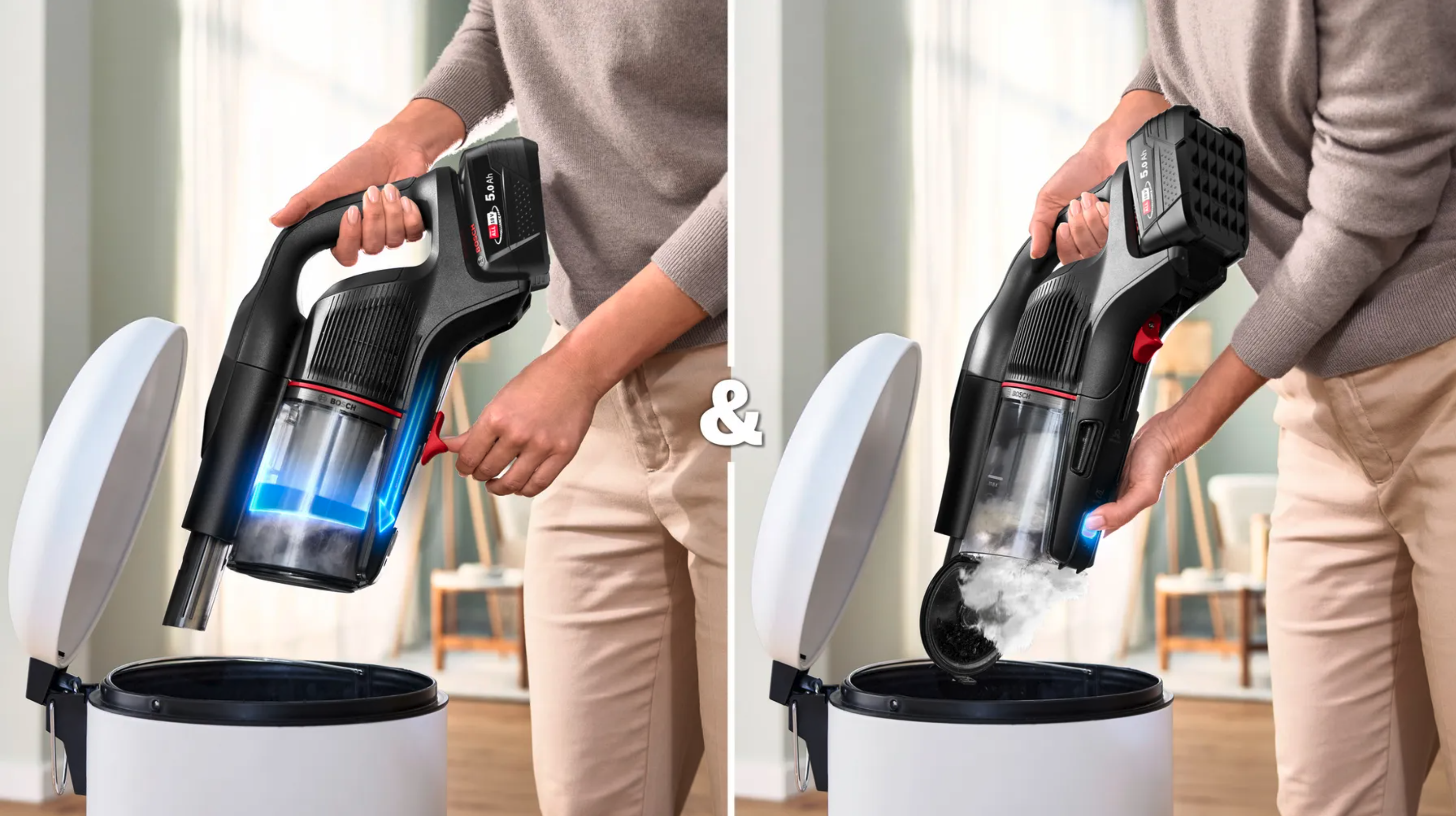 - Makkelijk te legen stofreservoir met stofcompressor: hygiënisch