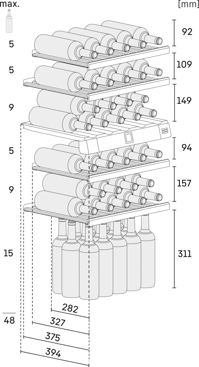 Capaciteit 0,75 l bordeaux fles: 48