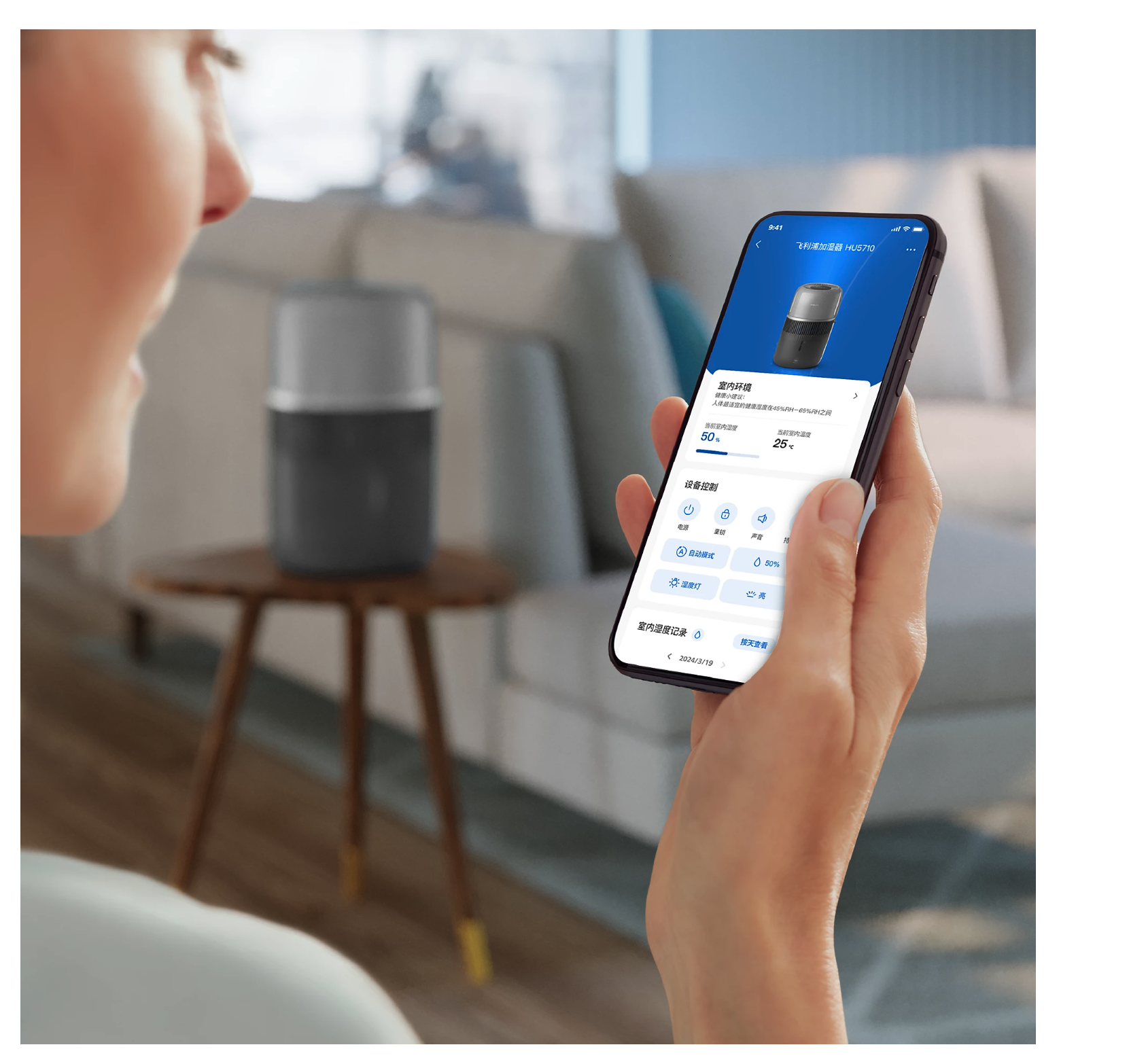 Vochtigheidsinstellingen 30-70% (in stappen van 5%)