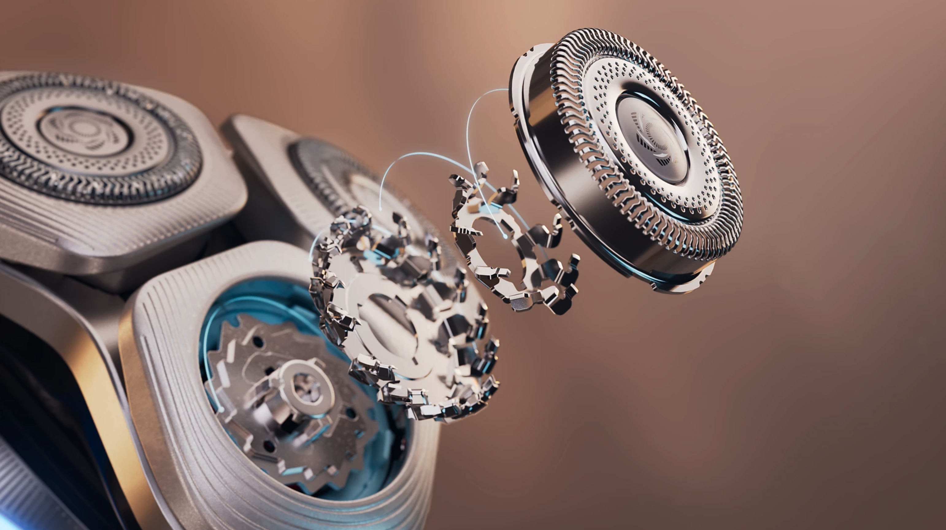 Contourvolgend: 360° draaibaar precisiescheerhoofd